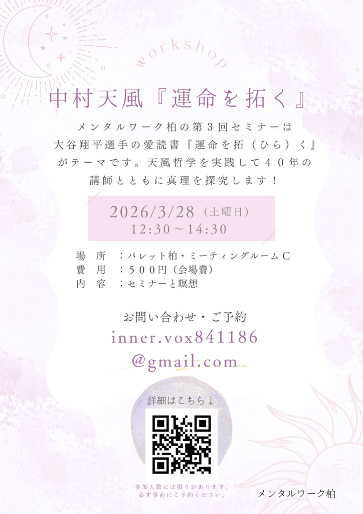 メンタルワーク柏/第3回セミナー(2026/3/28)開催のお知らせ ※ 2026/2/28更新
